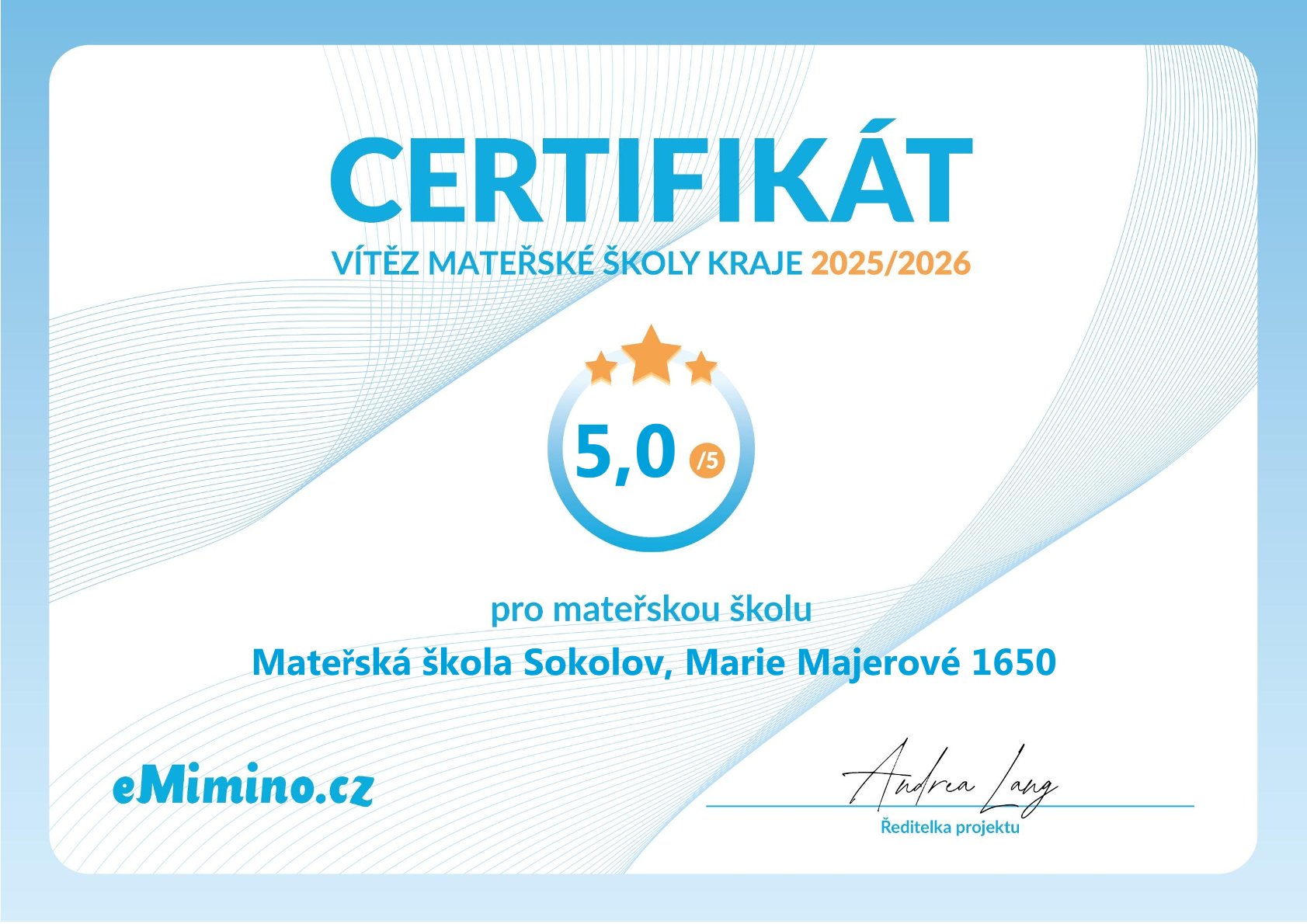 VÍTEJTE NA STRÁNKÁCH MATEŘSKÉ ŠKOLY SOKOLOV, MARIE MAJEROVÉ 1650
