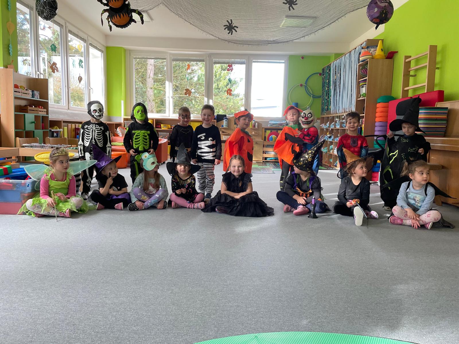 Ve čtvrtek se třída Žabiček proměnila v pohádkové i strašidelné království! Do školky přišlo spoustu zajímavých masek – čarodějnice, duchové, Spidermani, dýně, princezny i víly. Děti si společně užily veselé dopoledne plné soutěží, her a tance. Nechyběl smích, radost a kouzelná atmosféra, která provázela celé dopoledne.