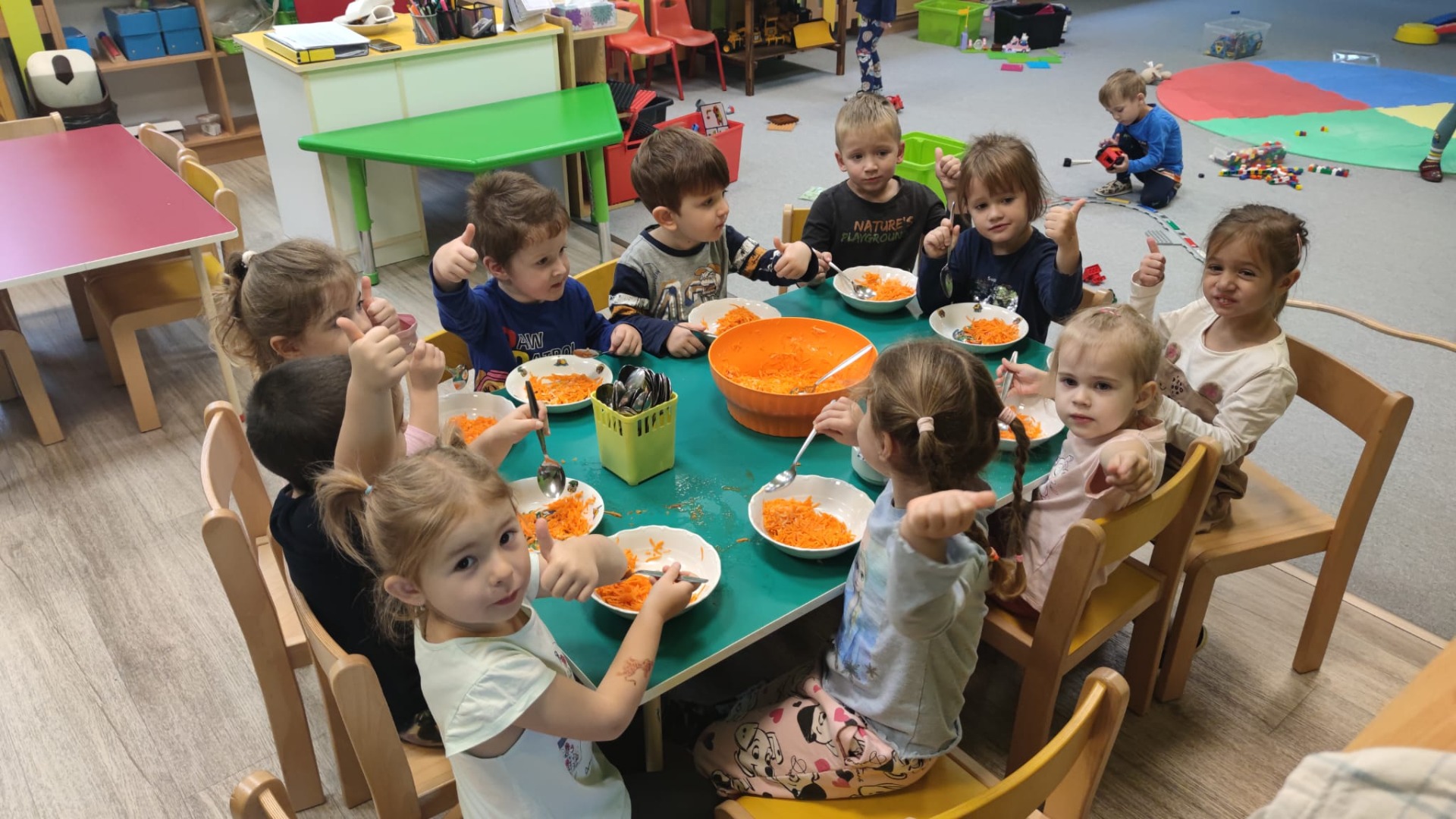 Na jaře děti zasely semínka mrkvičky a s radostí sledovaly, jak z nich vyrůstají zelené rostlinky. Každý den je zalévaly, plely záhonek a pečlivě se o ně staraly. Minulý týden přišla dlouho očekávaná chvíle – sklizeň mrkvičky. Z vlastnoručně vypěstované úrody děti připravily výborný, zdravý mrkvový salát plný vitamínů.