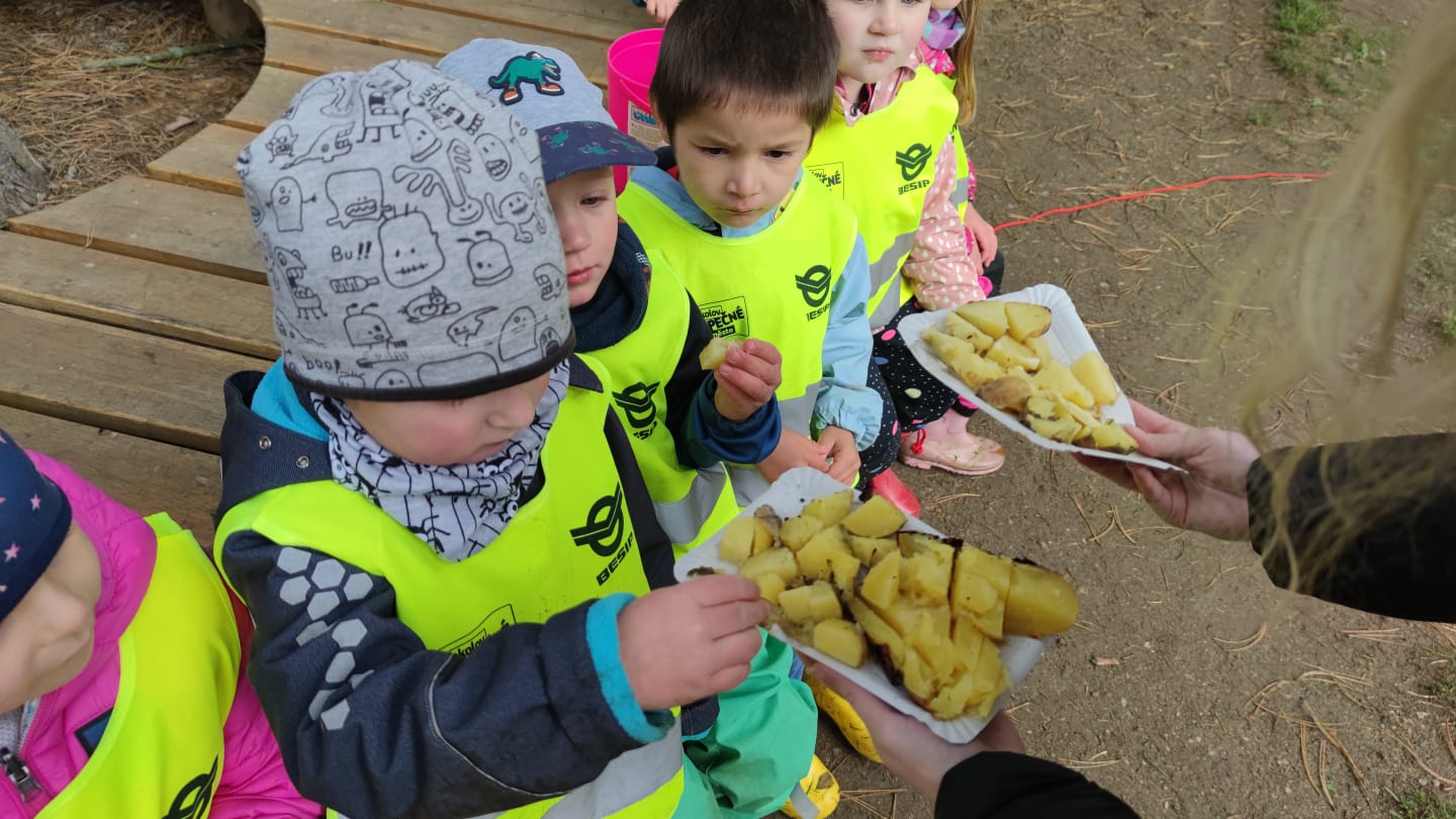 V úterý 14. 10. 2025 si děti z MŠ na společné akci upekly brambory a jablíčka.